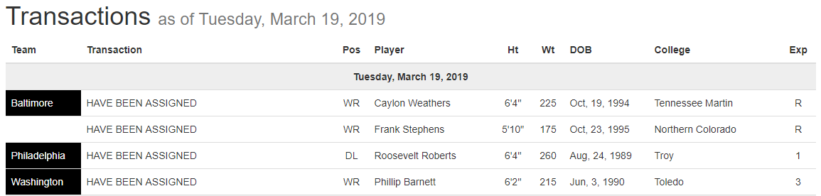 Baltimore Brigade, Philadelphia Soul, Transactions, Washington Valor March 19, 2019 – League Transactions Posted by FanZoneNetwork on March 20, 2019March 20, 2019 Share this: Click to share on X (Opens in new window) X Click to share on Facebook (Opens in new window) Facebook More Click to share on LinkedIn (Opens in new window) LinkedIn Click to share on Reddit (Opens in new window) Reddit Click to share on X (Opens in new window) X Like Loading... Related