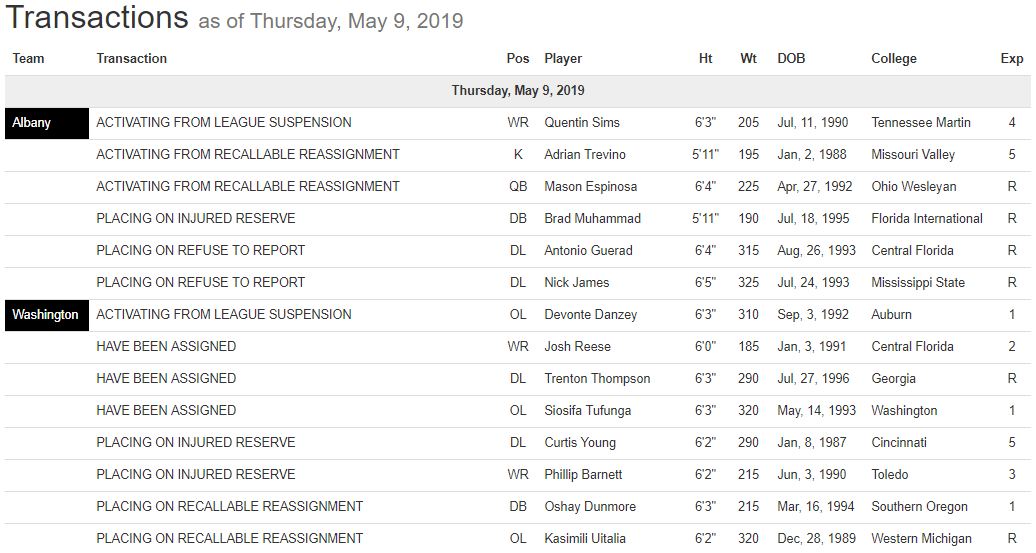 Albany Empire, Transactions, Washington Valor May 9, 2019 – League Transactions Posted by FanZoneNetwork on May 10, 2019August 6, 2019 Share this: Click to share on X (Opens in new window) X Click to share on Facebook (Opens in new window) Facebook More Click to share on LinkedIn (Opens in new window) LinkedIn Click to share on Reddit (Opens in new window) Reddit Click to share on X (Opens in new window) X Like Loading... Related