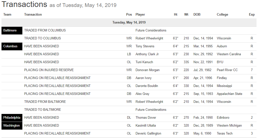 Baltimore Brigade, Columbus Destroyers, Philadelphia Soul, Transactions, Washington Valor May 14, 2019 – League Transactions Posted by FanZoneNetwork on May 15, 2019August 6, 2019 Share this: Click to share on X (Opens in new window) X Click to share on Facebook (Opens in new window) Facebook More Click to share on LinkedIn (Opens in new window) LinkedIn Click to share on Reddit (Opens in new window) Reddit Click to share on X (Opens in new window) X Like Loading... Related