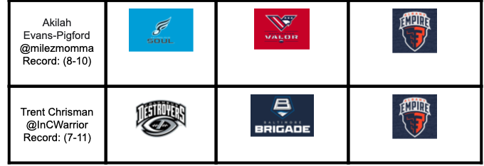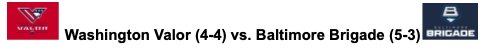 Baltimore finally broke the win/loss pattern this past week, putting together a two game win streak for the first time all year. The Brigade will be facing a Valor team that squandered a 27 point lead to lost to Albany by 1. Baltimore currently holds the head to head advantage over Washington, making this game the most significant game of the weekend, playoffs-wise.
