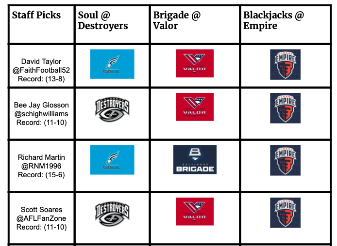 Week 8 gave the AFL its first playoff team! The Albany Empire clinched a playoff spot in a huge come from behind win against the Valor. This week will shuffle the playoff deck a bit more. Here is a look: