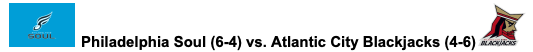 Atlantic City has put up 131 points in its last two games (65.5 ppg) with backup quarterback Warren Smith, Jr. at the helm. Smith is 46-62 for 538 yards and 12 touchdowns in his last two starts. Atlantic City is simply a different team with Smith at quarterback. Last week, the defense came up big as well, forcing 3 interceptions and recording one sack in the game. For the Blackjacks to win, the defense will have to step up and stop a Soul offense that was unstoppable against the best team in the league last weekend.