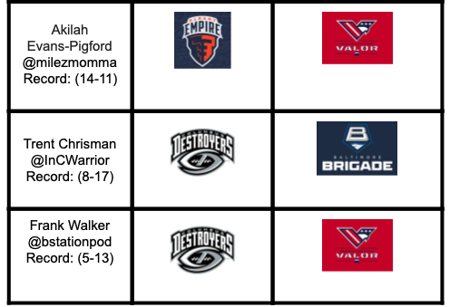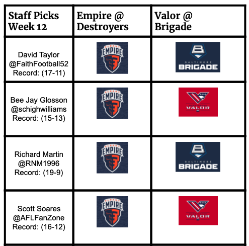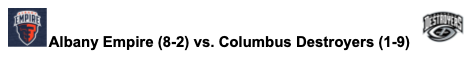 Week 12 is here and there are two matchups to preview. Albany travels to Columbus to take on the Destroyers, looking for the number one seed. Washington travels to Baltimore to try and clinch the final playoff spot. There’s still plenty to play for this weekend.